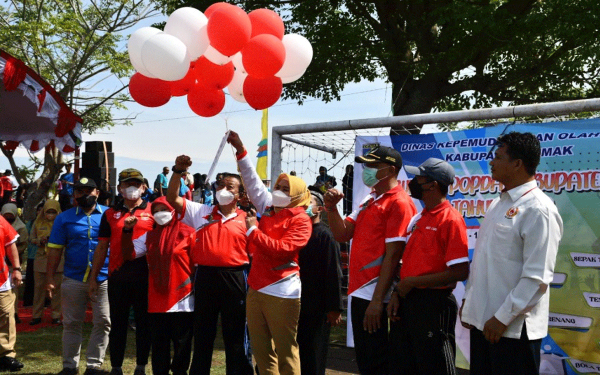 DEMAK[Berlianmedia] – Pekan Olahraga Pelajar Daerah (Popda) Tingkat Kabupaten Demak 2022 dibuka oleh Bupati Demak Eisti’anah, di Lapangan Kendali Sodo Desa Cabean, Senin (10/10).