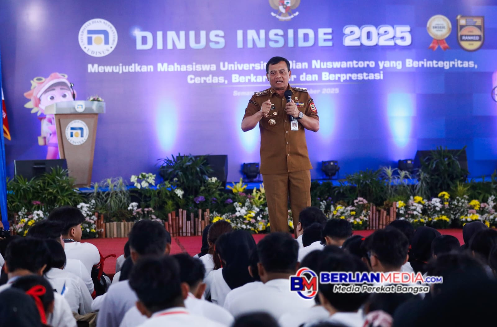 SEMARANG [Berlianmedia]- Gubernur Jawa Tengah Ahmad Luthfi menawarkan kepada mahasiswa untuk ikut program sehari bersama gubernur atau kepala daerah. Tawaran tersebut ia sampaikan di depan ribuan mahasiswa Universitas Dian Nuswantoro (Udinus), Senin (8/9).