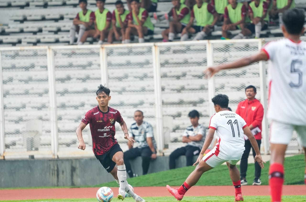 Garuda muda melakukan uji tanding melawan tim PON Sumut di Stadion Madya, Jakarta. Dalam uji tanding tersebut tim PON Sumut menang 2-1, Sabtu (29/6)