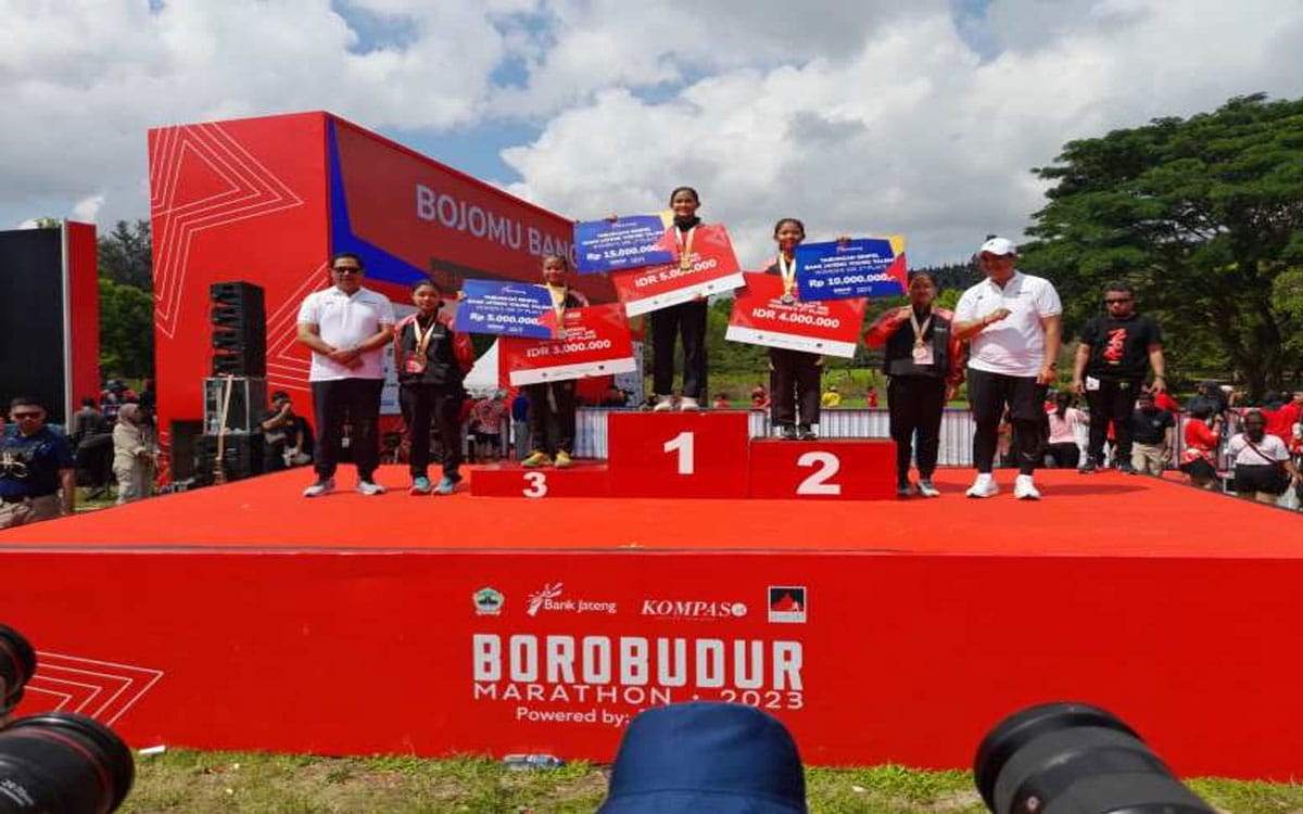MAGELANG[Berlianmedia] – Pelari Indonesia Odekta Elvina Naibaho meraih podium ketiga pada nomor maraton overall putri ajang Borobudur Marathon (BorMar) 2023 Powered by Bank Jateng yang dihelat di kawasan Candi Borobudur, Kabupaten Magelang, Minggu (19/11).
