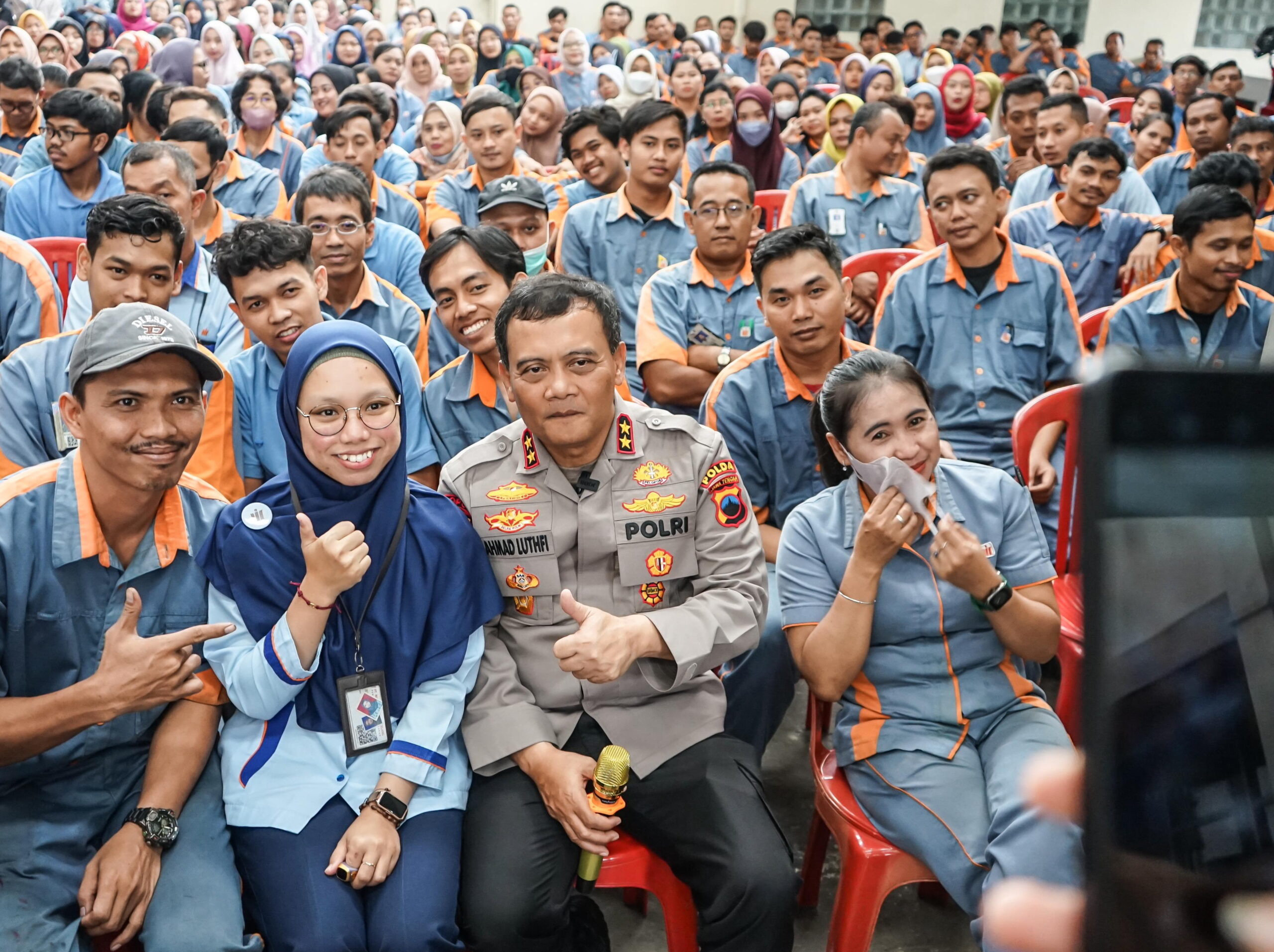 Dalam kegiatan ini, Irjen Pol Ahmad Luthfi disambut hangat ribuan karyawan ketiga perusahaan, Kapolda yang didampingi sejumlah Pejabat Utama Polda Jateng, memberikan arahan untuk memastikan bahwa Polri berkomitmen memberikan jaminan keamanan kepada para karyawan di tempat usaha.