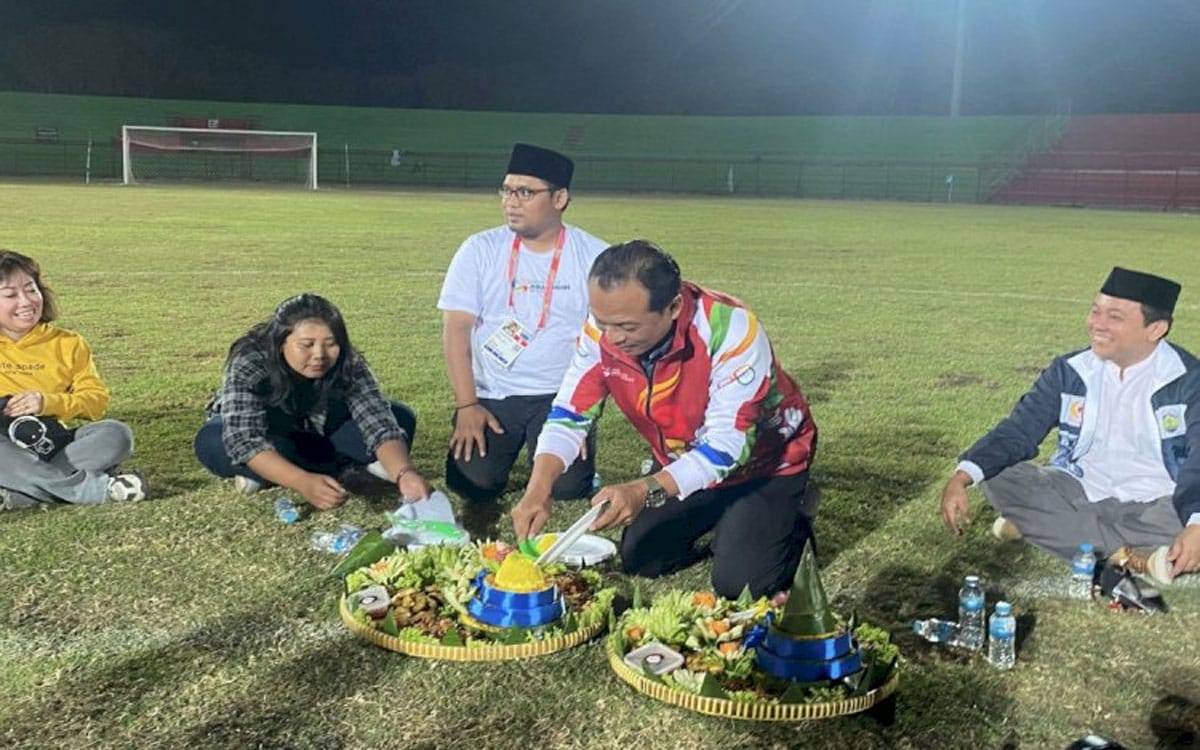JEPARA[Berlianmedia] – Untuk menjamin kelancaran serta kesuksesan penutupan Pekan Olahraga Provinsi (Porprov) Jawa Tengah XVI 2023, panitia dan penyelenggara menggelar doa bersama dan potong tumpeng, bertempat di lapangan sepak bola Gelora Bumi Kartini, Minggu (6/8) malam.