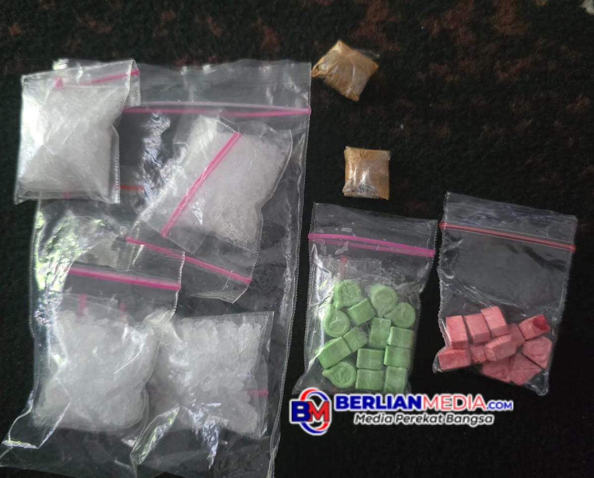 Secara keseluruhan, barang bukti yang diamankan meliputi sabu dengan total berat 28,29 gram, 28 butir pil ekstasi, timbangan digital, plastik klip, pipet kaca, sedotan, gunting, korek api, isolasi, dua unit handphone serta satu unit sepeda motor Honda.