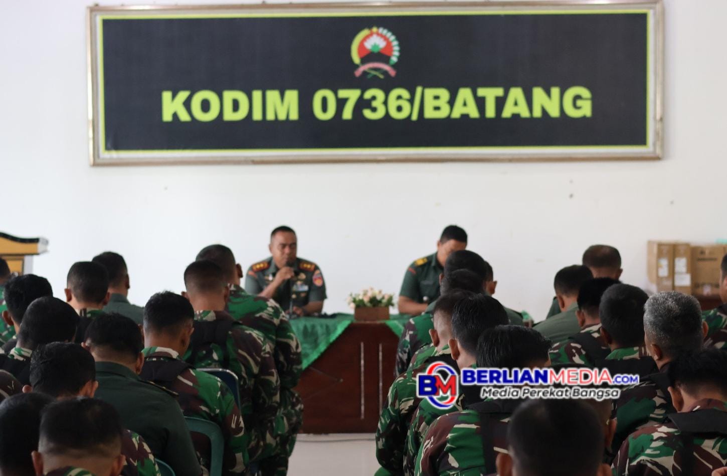 BATANG [Berlianmedia]- Dalam menekan pelanggaran seminimal mungkin, Komandan Kodim 0736/Batang Letkol Inf Andhika Baroto Chrishastantyo, memberikan Jam Komandan kepada anggota guna evaluasi dan arahan dalam pelaksanaan kegiatan, untuk mendukung tugas pokok Komando kewilayahan. Bertempat di Aula Makodim Jalan Jenderal Sudirman No. 41 Kasepuhan Batang, Senin (21/7).