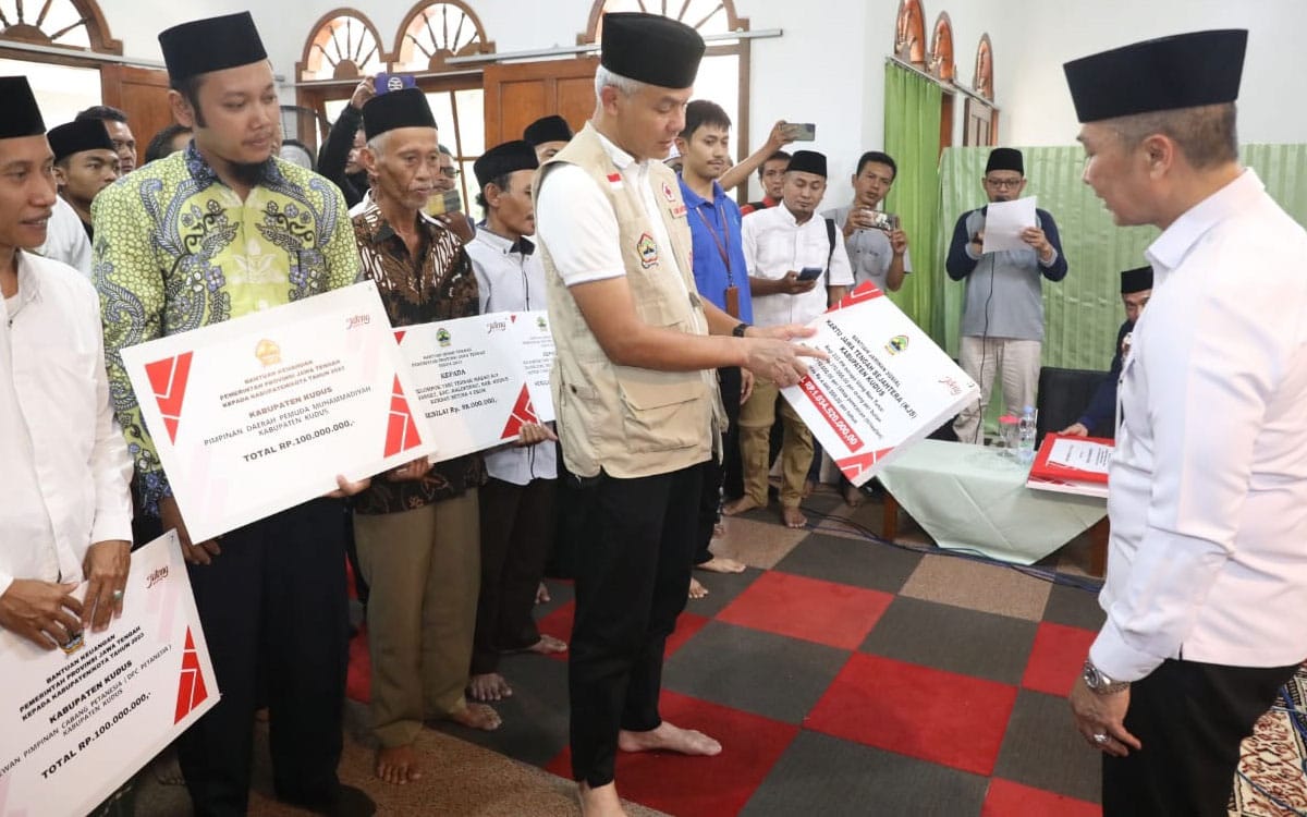 Selain Ponpes Darul Falah Jekulo, bantuan PLTS Rooftop juga diberikan kepada Ponpes Al-Qur’an Arroudlotul Mardliyah II. Ganjar juga menyerahkan bantuan paket sarpras perikanan budidaya senilai Rp19 juta untuk Remaja Asri.