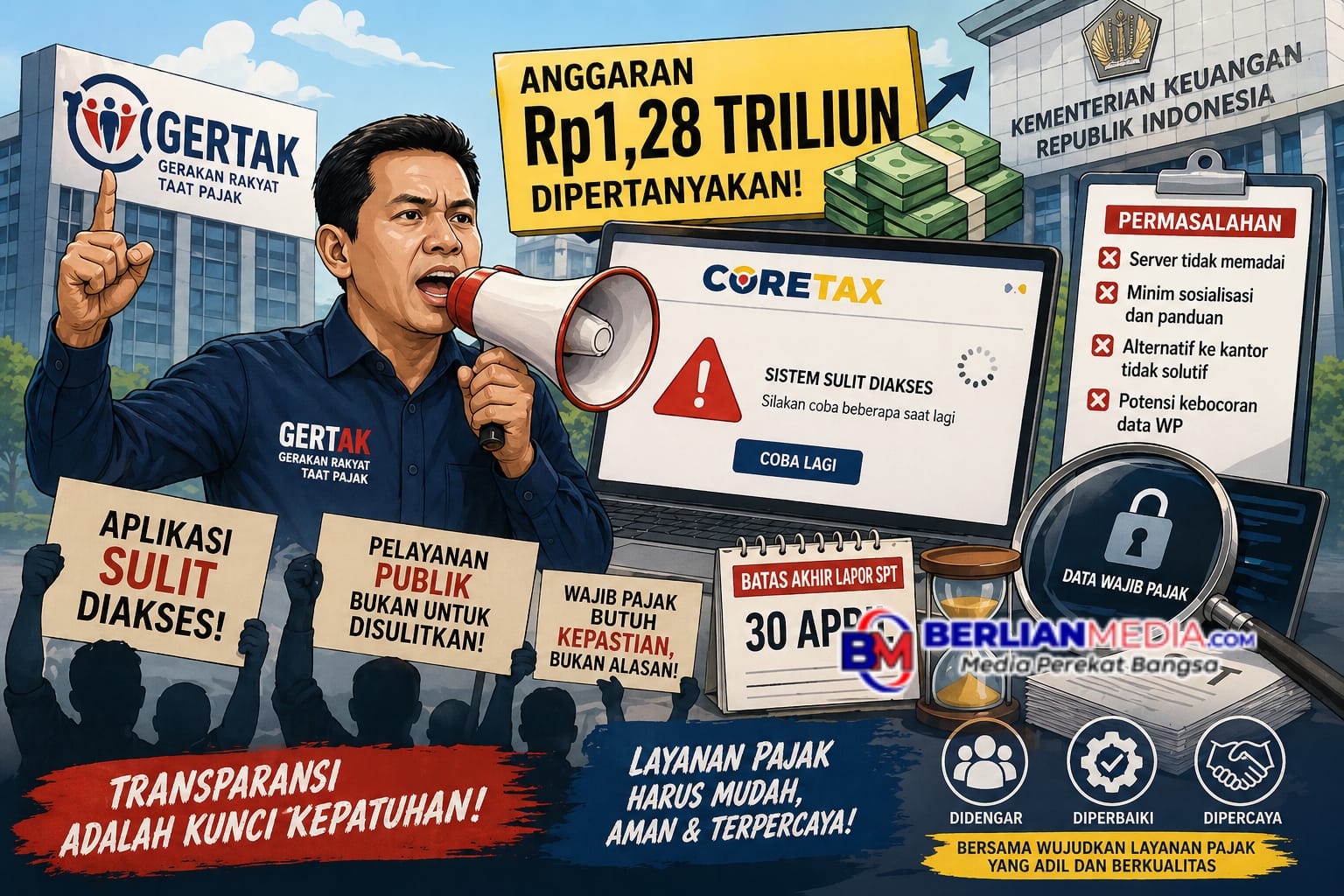 JAKARTA [Berlianmedia]- Sekjen Gerakan Rakyat Taat Pajak (GERTAK) Teguh Supriyanto mengkritisi manfaat aplikasi Coretax, yang digadang-gadang akan mempermudah wajib pajak memenuhi kewajibannya.