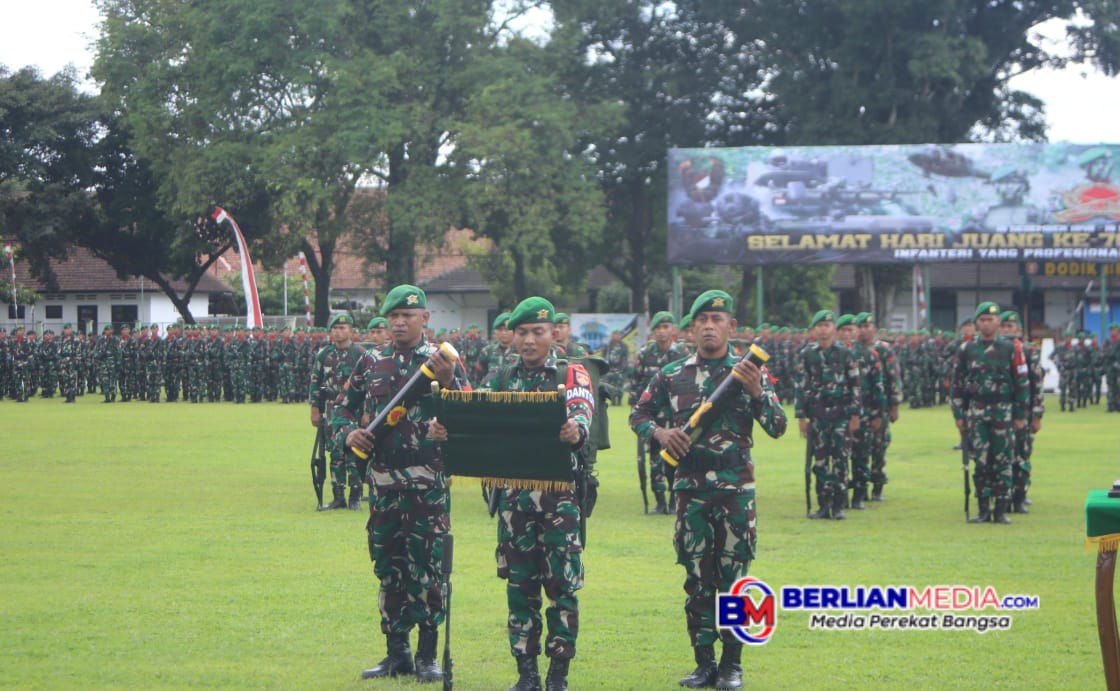 MAGELANG [Berlianmedia]– Kapok Sahli Pangdam IV/Diponegoro Brigjen TNI Zainul Bahar, S.H., M.Si., memimpin upacara peringatan Hari Juang Infanteri ke-76, sekaligus untuk menandai akhir dari rute gerak jalan ratusan Kilometer Peleton Beranting, di Lapangan Rindam IV/Diponegoro, Kamis (19/12).