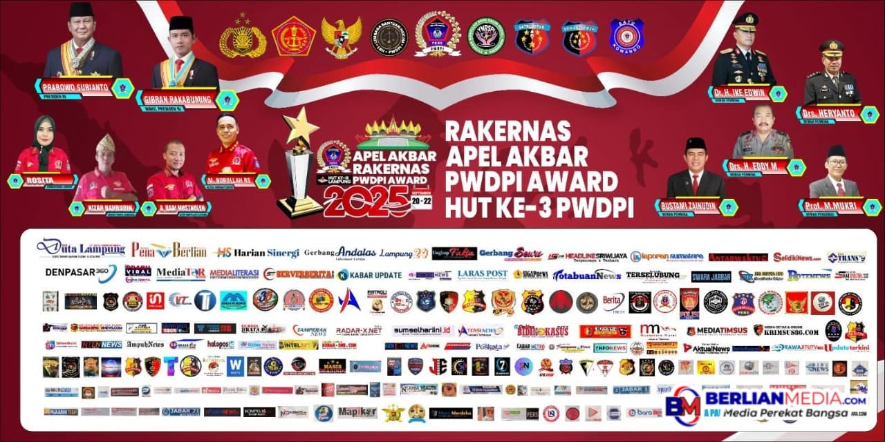 LAMPUNG [Berlianmedia] – Ketua Umum, Persatuan Wartawan Duta Pena Indonesia (PWDPI) akan berikan penghargaan PWDPI Sustainability Award 2025 kepada Presiden RI, Prabowo Subianto dan Sejumlah Menteri serta Tokoh Nasional dan Tokoh Daerah.