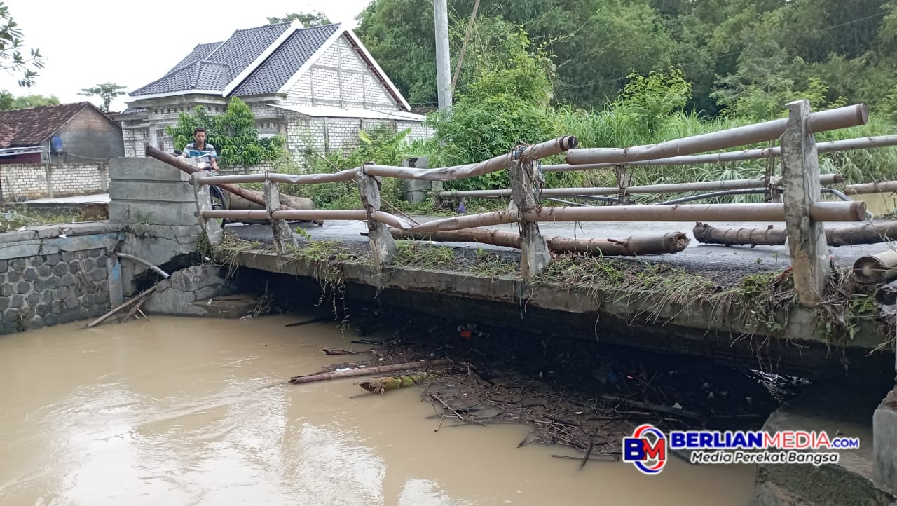 Jembatan Penghubung Desa Pengkol Babadan Retak Akibat Hujan Semalam.