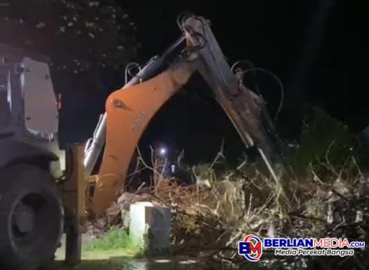 Pembersihan yang dilakukan pukul 01.00 dihari. air pun langsung mengalir deras begitu alat berat mengeruk sumbatan sampah kayu dan ranting bambu,ujar dia.