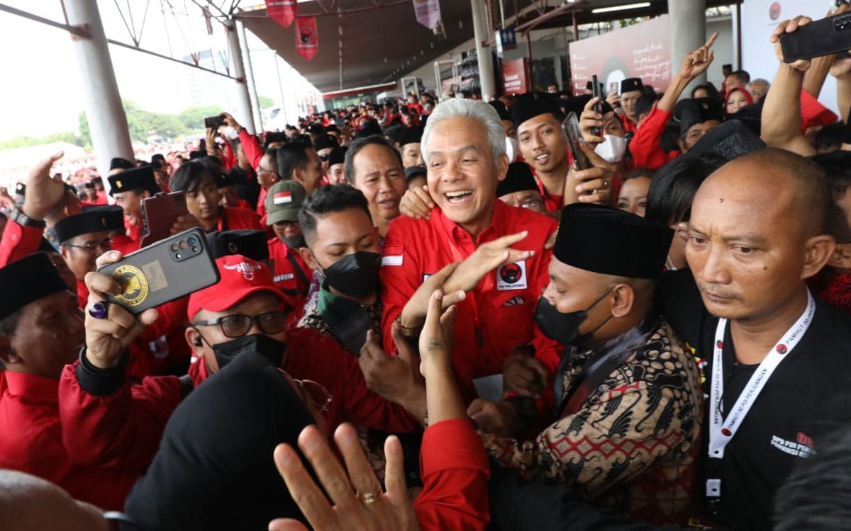 Ribuan kader PDIP begitu antusias dengan kedatangan Ganjar. Mereka saling berebut mendekat, bahkan saar Ganjar ke toilet pun diikuti.