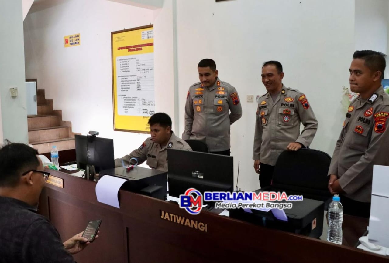 Dalam kegiatan tersebut, Kapolres meninjau langsung ruang pelayanan SPKT, memeriksa kesiapan petugas, serta memastikan kelancaran pengoperasian berbagai aplikasi pendukung pelayanan digital seperti 110, DORS, dan WhatsApp Siraju di nomor 08112894040.