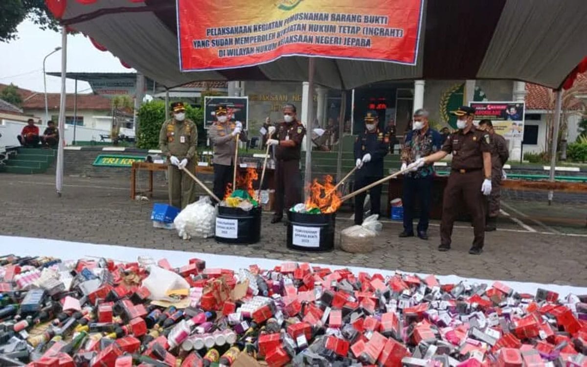 JEPARA[Berlianmedia] – Kejaksaan Negeri (Kejari) Kabupaten Jepara memusnahkan barang bukti yang memiliki kekuatan hukum di Halaman Kantor Kejaksaan Negeri Jepara, Kamis (23/11).
