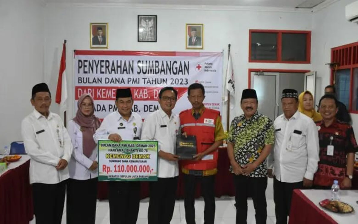 Donasi sebesar Rp110.000.000 yang terkumpul dari Kementrian Agama Kabupaten Demak, diserahkan langsung Kepala Kemenag Afief Mundzir kepada Ketua PMI Ahmad Sugiharto, Selasa (16/1) di Markas PMI Demak.