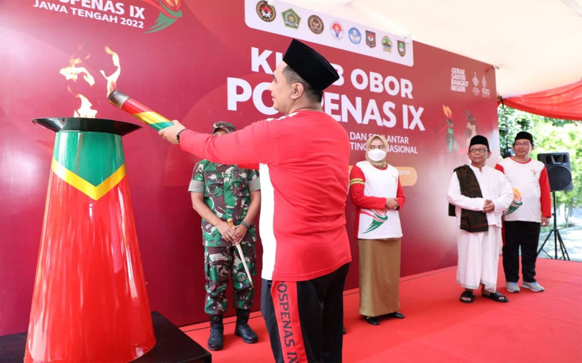 Obor Pospenas yang ambil dari sumber Api Abadi Mrapen Grobogan itu, kemudian disematkan di panggung oleh bupati Demak. Setelah mendapat pengarahan dan doa restu dari KH Munif Zuhri, selanjutnya Wakil Gubernur Taj Yasin Maimoen menyerahkan kembali obor Pospenas kepada santri untuk melanjutkan kirab menuju Ponpes Al Mas’udiyah Bandungan, Kabupaten Semarang, dan berakhir di Stadion Manahan Surakarta.
