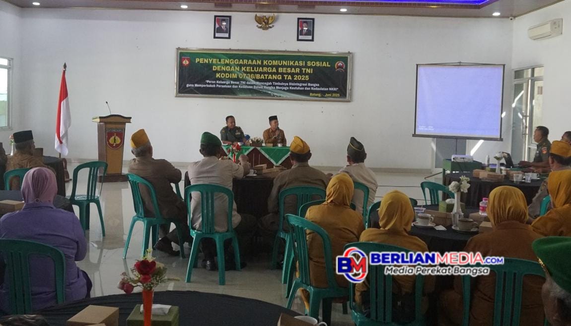 BATANG [Berlianmedia]- Dalam menjaga hubungan baik dan mempererat tali silaturahmi antara TNI dengan Keluarga Besar TNI, Kodim 0736/Batang menggelar Komsos (Komunikasi Sosial) dengan KBT (Keluarga Besar TNI), di Aula Makodim Jalan Jenderal Sudirman No. 41 Kasepuhan Batang, Selasa (1/7).