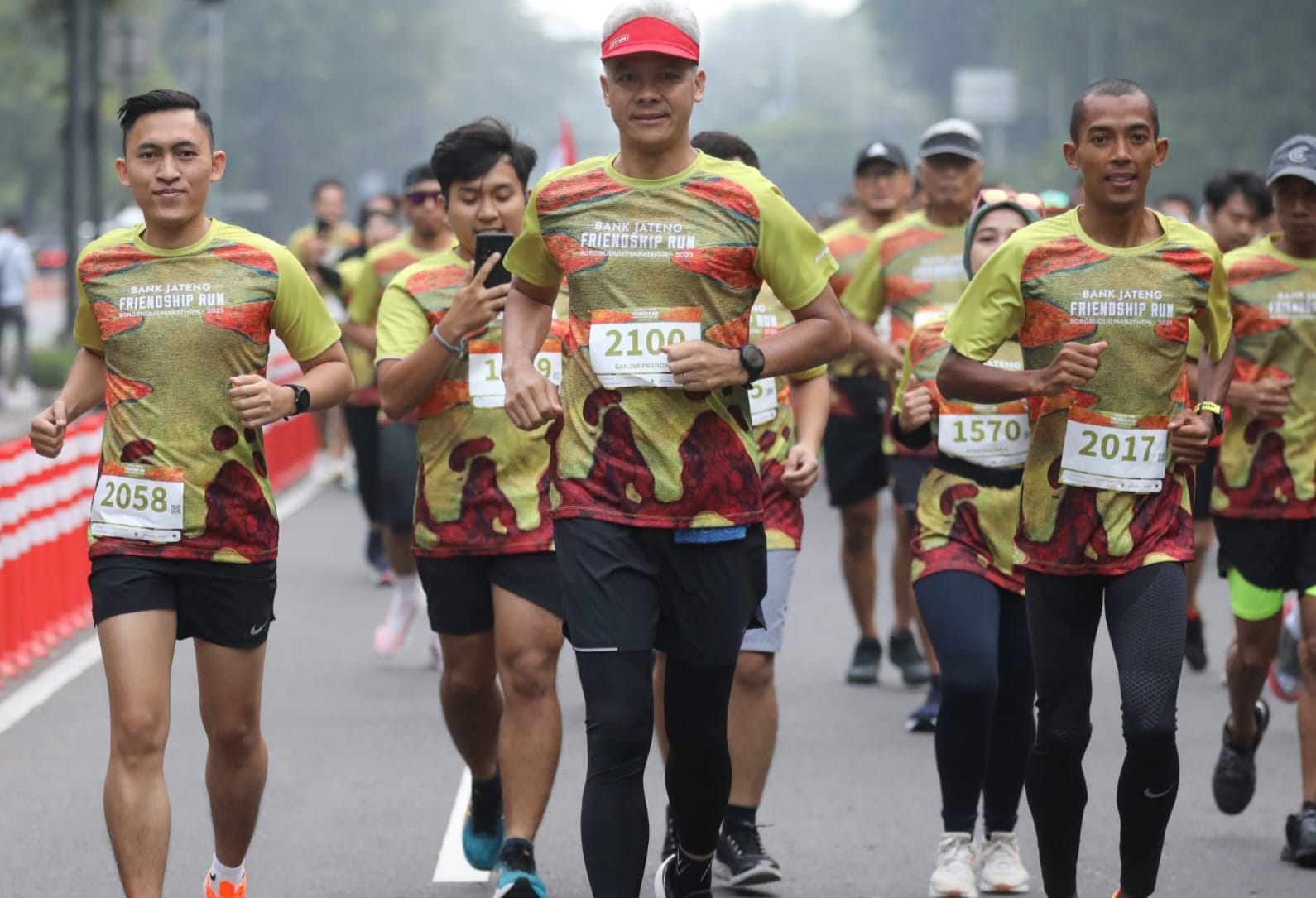 Agus lari bareng Gubernur Jawa Tengah Ganjar Pranowo dan ribuan runners yang berasal dari Jakarta dan sekitarnya, sejauh 5 kilometer.