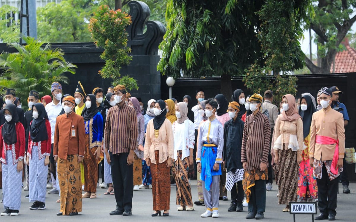 “Sekarang kami pakai baju adat, karena Kamis kemarin saya pakai adat nusantara ini, saya kembali pakai baju adat Jawa,” ujarnya usai upacara.