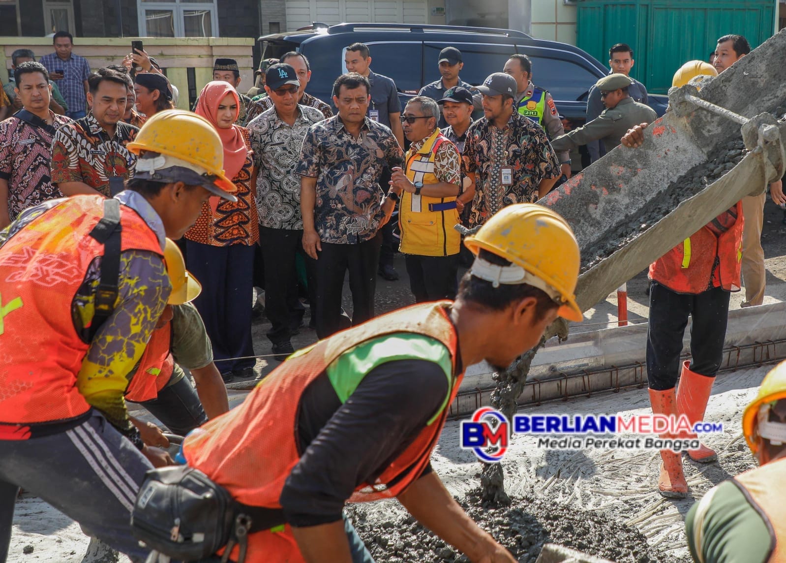 Adapun pekerjaan yang sudah berjalan, meliputi mobilisasi, galian biasa, perbaikan CAP, perkerasan beton semen, lapis pondasi beton kurus, pelebaran dengan lapis pondasi agregat kelas A, serta bahu jalan beton Fc 20 Mpa.