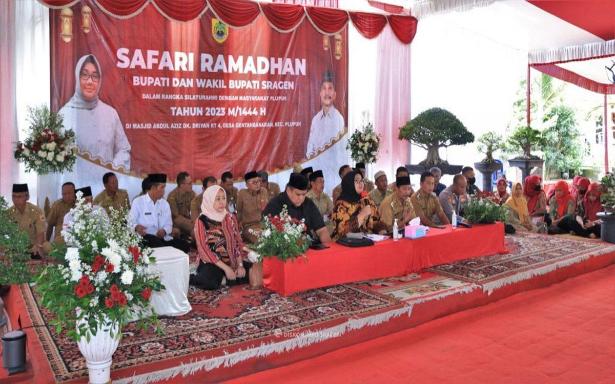“Jika ingin wisata kuliner kita punya Pasa Bahulak, lalu ada wisata Gunung Kemukus, Pemandian air panas Bayanan, kalau ingin makan duren di Sukorejo Sambirejo, kemudian Museum Sangiran. Atau kalau mau mencari oleh-oleh kain batik juga ada di Plupuh dan Masaran. Supaya uangnya bisa berputar di Sragen,” ujarnya saat memberikan arahan pada rangkaian Safarai Ramadan Asar Keliling (Sharling) di Masjid Abdul Azis, Dukuh Driyan, Desa Gentan Banaran, Kecamatan Plupuh, Senin (3/4).