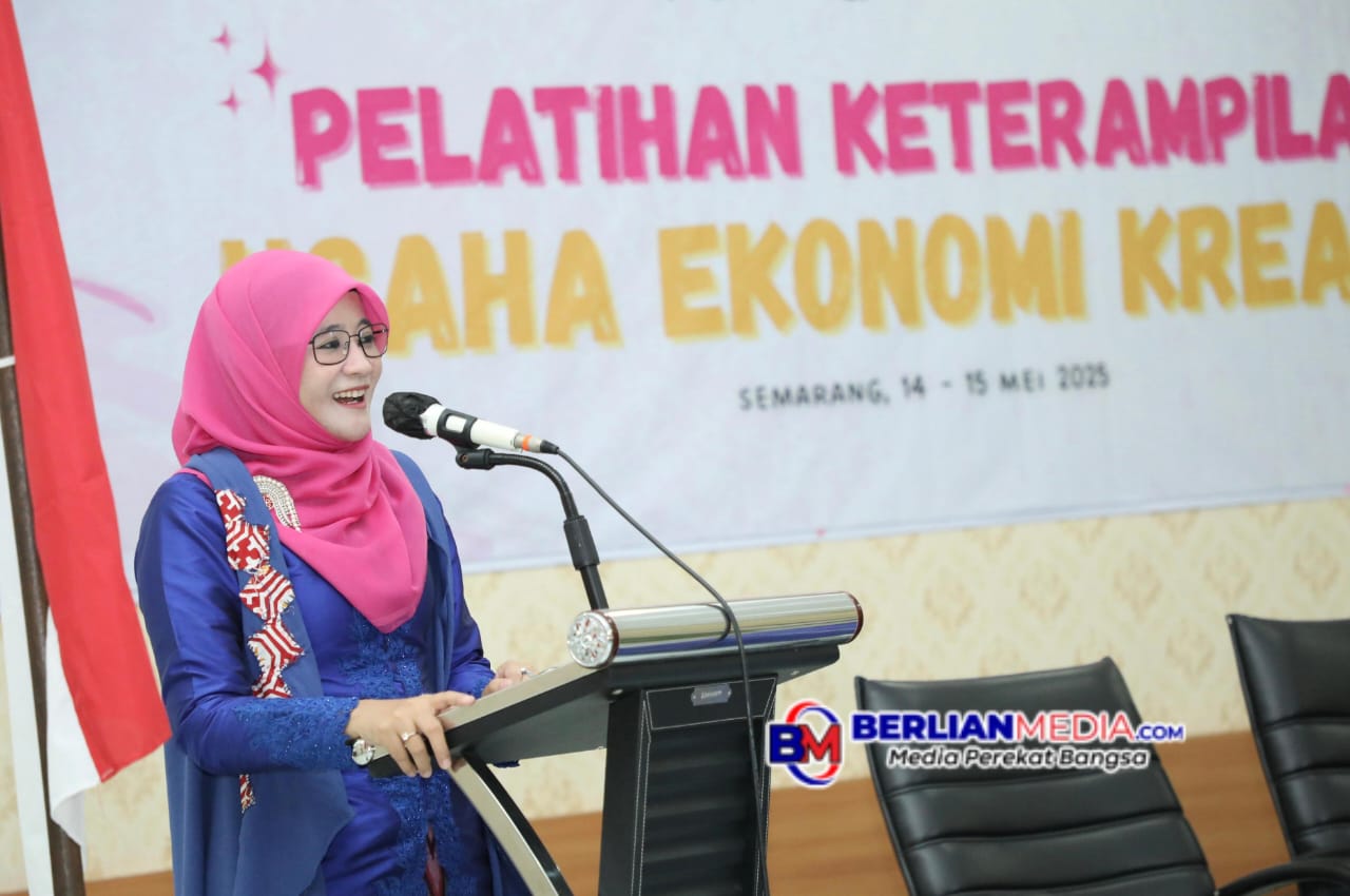 SEMARANG [Berlianmedia]- Ketua TP PKK Jawa Tengah Hj.Nawal Arafah Yasin mengapresiasi pelatihan keterampilan usaha ekonomi kreatif, bagi 100 kader PKK, di Gedung Balatkop, Dinas Koperasi dan UKM Jawa Tengah, (14-15/5).
