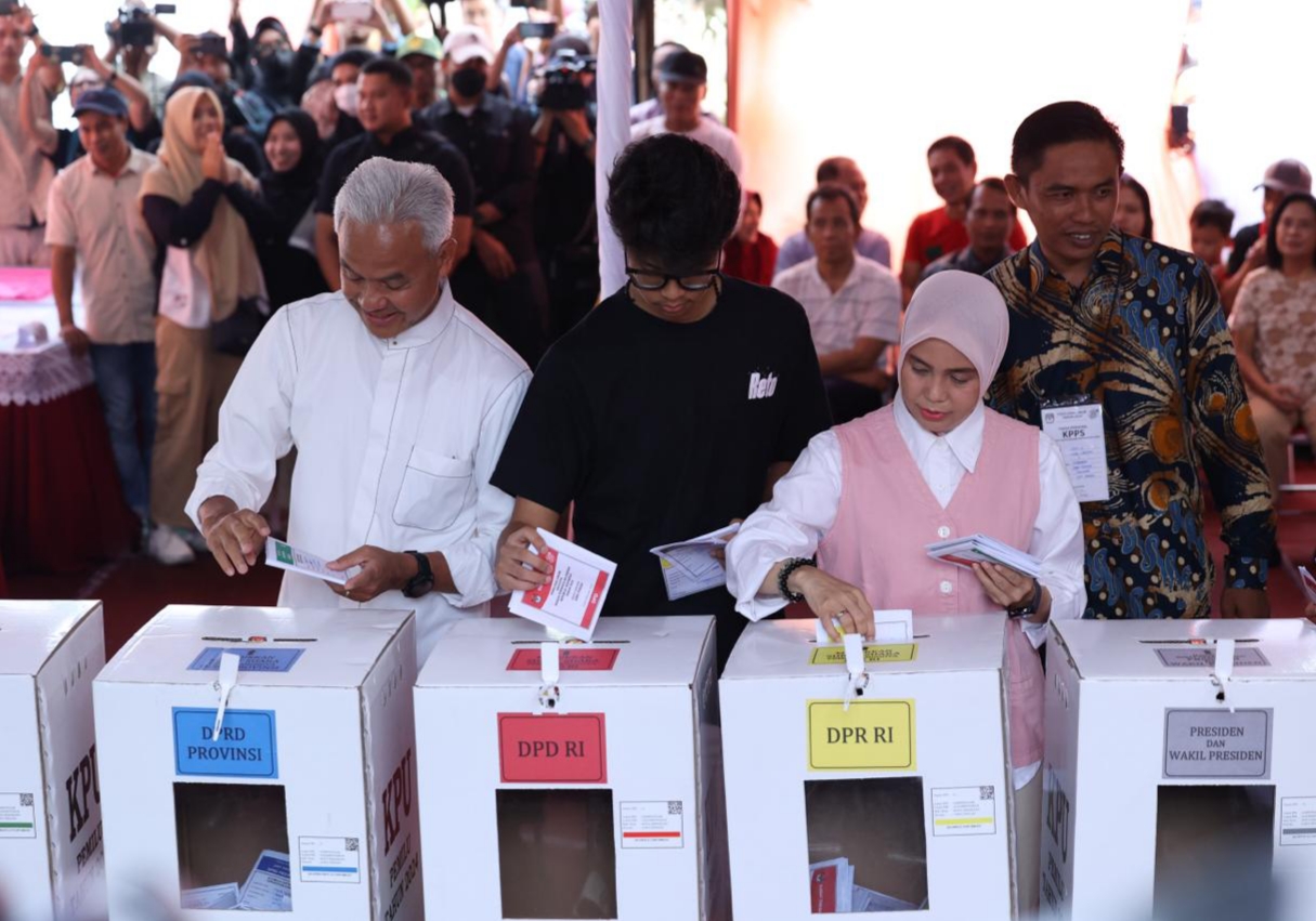 Rangkaian tahap Pemilu pun diikuti dengan khidmat. Ganjar dan Alam di bilik suara dengan waktu sekitar 3 menit. Sementara Atikoh, membutuhkan waktu lebih lama. Mereka kemudian memasukkan surat suara ke kotak suara secara bersamaan.