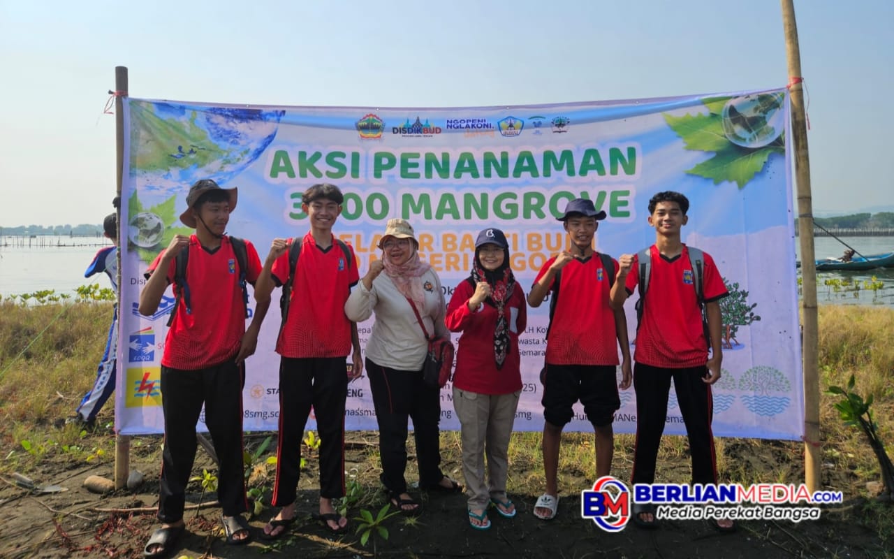 SEMARANG[Berlianmedia] – Dalam upaya mendukung program Pemerintah Provinsi Jawa Tengah “Mageri Segoro” atau menjaga laut, SMA Negeri 4 Semarang berpartisipasi dalam kegiatan penanaman mangrove yang berlangsung di Pulau Tirang, Desa Tapak, Kota Semarang, Rabu (8/10).