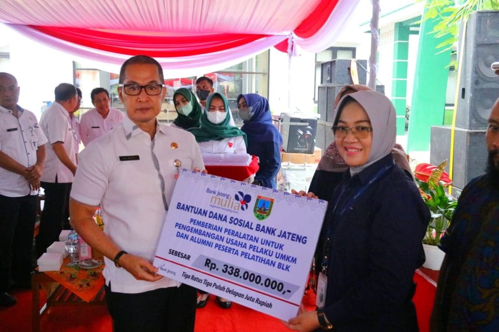 KUDUS[Berlianmedia] – Pelaku UMKM dan alumni pelatihan UPTD BLK Kabupaten Kudus, menerima bantuan peralatan dari CSR Bank Jateng. Penyerahan bantuan dilakukan di Kantor Disnakerperinkop dan UKM Kudus, Jumat (20/1).