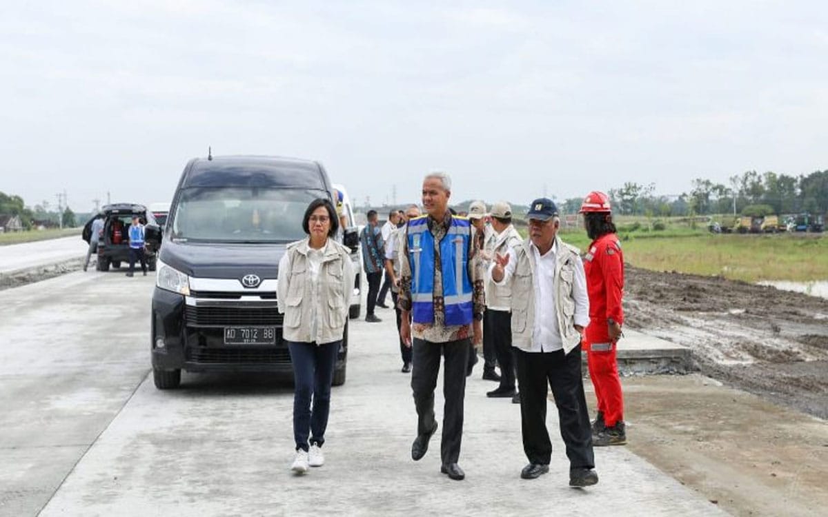 SURAKARTA[Berlianmedia] – Gubernur Jawa Tengah Ganjar Pranowo bersama Menteri PUPR RI Basuki Hadimoeljono, dan Menteri Keuangan RI Sri Mulyani Indrawati meninjau progres pembangunan Jalan Tol Solo-Yogyakarta,  di interchange seksi 1 ruas Tol Solo-Klaten, Senin (27/2).