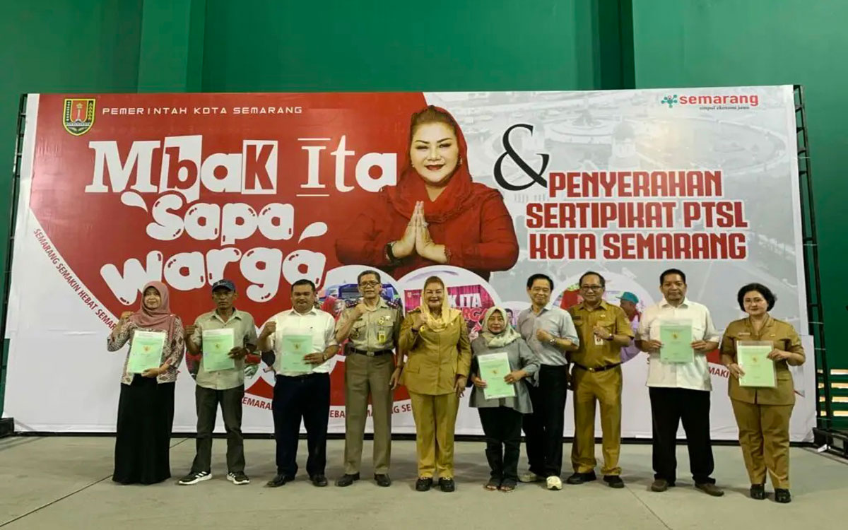 SEMARANG[Berlianmedia] – Pemerintah Kota Semarang bersama Kantor Pertanahan Kota Semarang menargetkan penyerahan sertifikat program pendaftaran tanah sistematis lengkap (PTSL) 2023 selesai pada Januari 2024 ini.