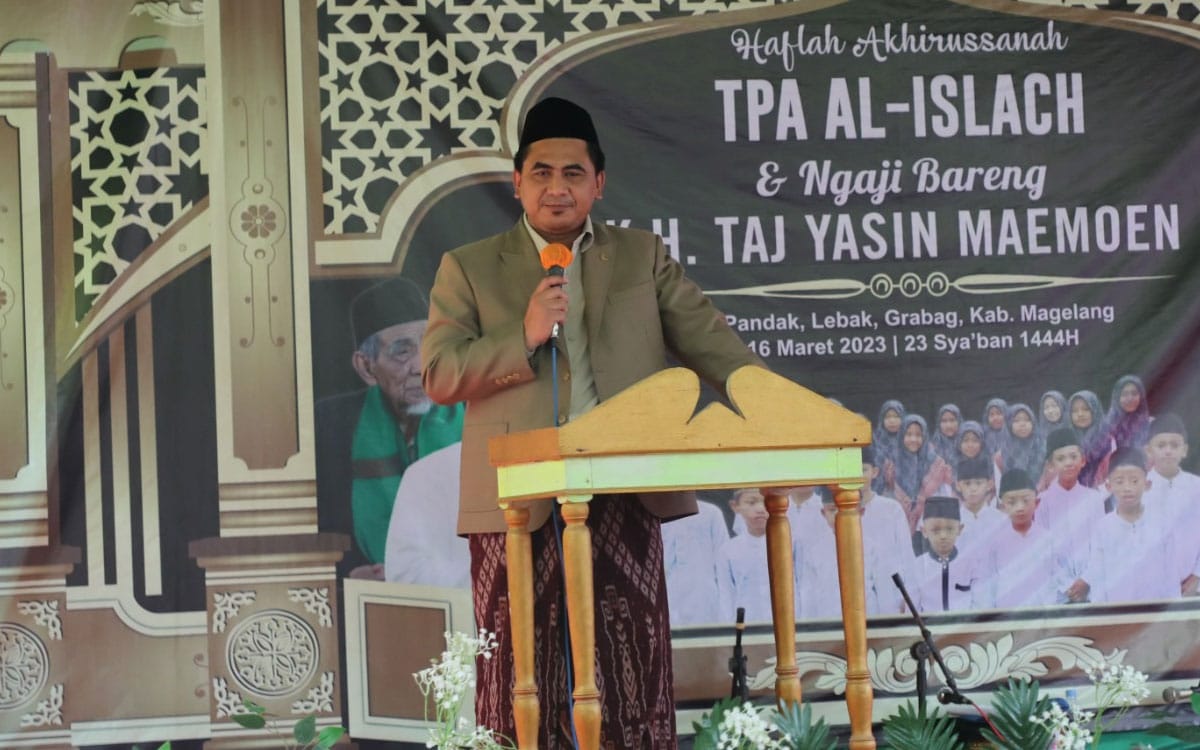 “Tentu kami akan memperhatikan lahan-lahan yang sampai saat ini terdampak atas erupsi Merapi yang kemarin. Kita akan data lagi. Segera kita nanti akan mengevaluasi apa saja yang perlu dibantu oleh pemerintah,” ujar Taj Yasin seusai menghadiri Haflah Akhirussanah TPQ Al Islach di Dusun Pandak Lebak – Grabag, Kabupaten Magelang, Kamis (16/3).