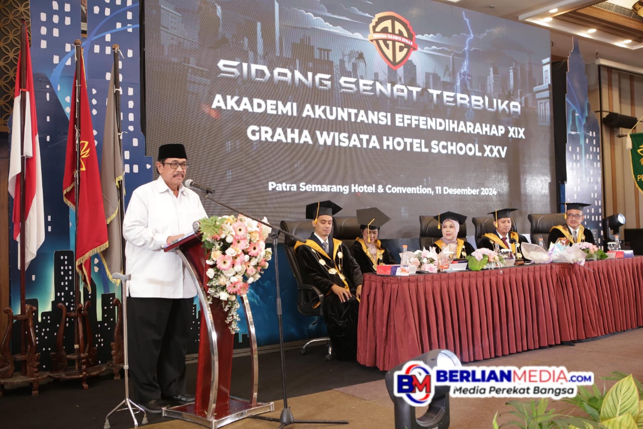 “Rekayasa itu hanya dapat diwujudkan oleh SDM berkualitas, bermutu, inovatif dan kreatif yang lahir dari lembaga-lembaga pendidikan formal maupun non formal baik yang dikelola pemerintah maupun masyarakat khususnya Graha Wisata Hotel School (Grawis) dan Akademi Akutansi Effendi Harahap,” kata Budiyanto dalam Wisuda XIX Akademi Akutansi Effendi Harahap dan Graha Wisata Hotel School XXV di Rama Shinta Ballroom Hotel Patra Semarang & Convention, Jl Sisingamangaraja Semarang Rabu (11/12)