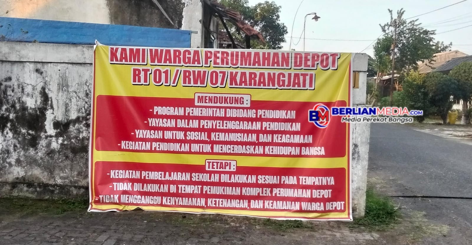 “Jadi, warga itu sudah melakukan pengaduan kepada lurah, camat, dinas terkait, bahkan sampai ke Bupati dan Kejaksaan. Tapi belum ada tindakan apapun. Kemudian warga menyatakan protesnya dengan membuat spanduk-spanduk. Intinya tetap mendukung kegiatan belajar mengajarnya, tapi tidak di lokasi perumahan warga, karena mengganggu kenyamanan warga,” paparnya.