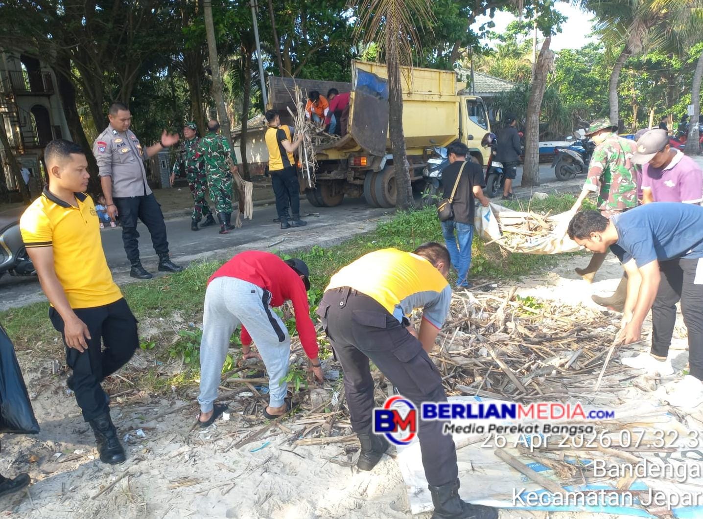 JEPARA [Berlianmedia]- Memperingati satu dekade beroperasinya objek wisata Jepara Ourland Park (JOP), Polsek Mlonggo jajaran Polres Jepara bersinergi dengan pemerintah desa, pengelola wisata serta elemen masyarakat melaksanakan aksi sosial gerakan bersih-bersih di kawasan Pantai Jubel, Desa Mororejo, Kabupaten Jepara, Minggu (26/4).