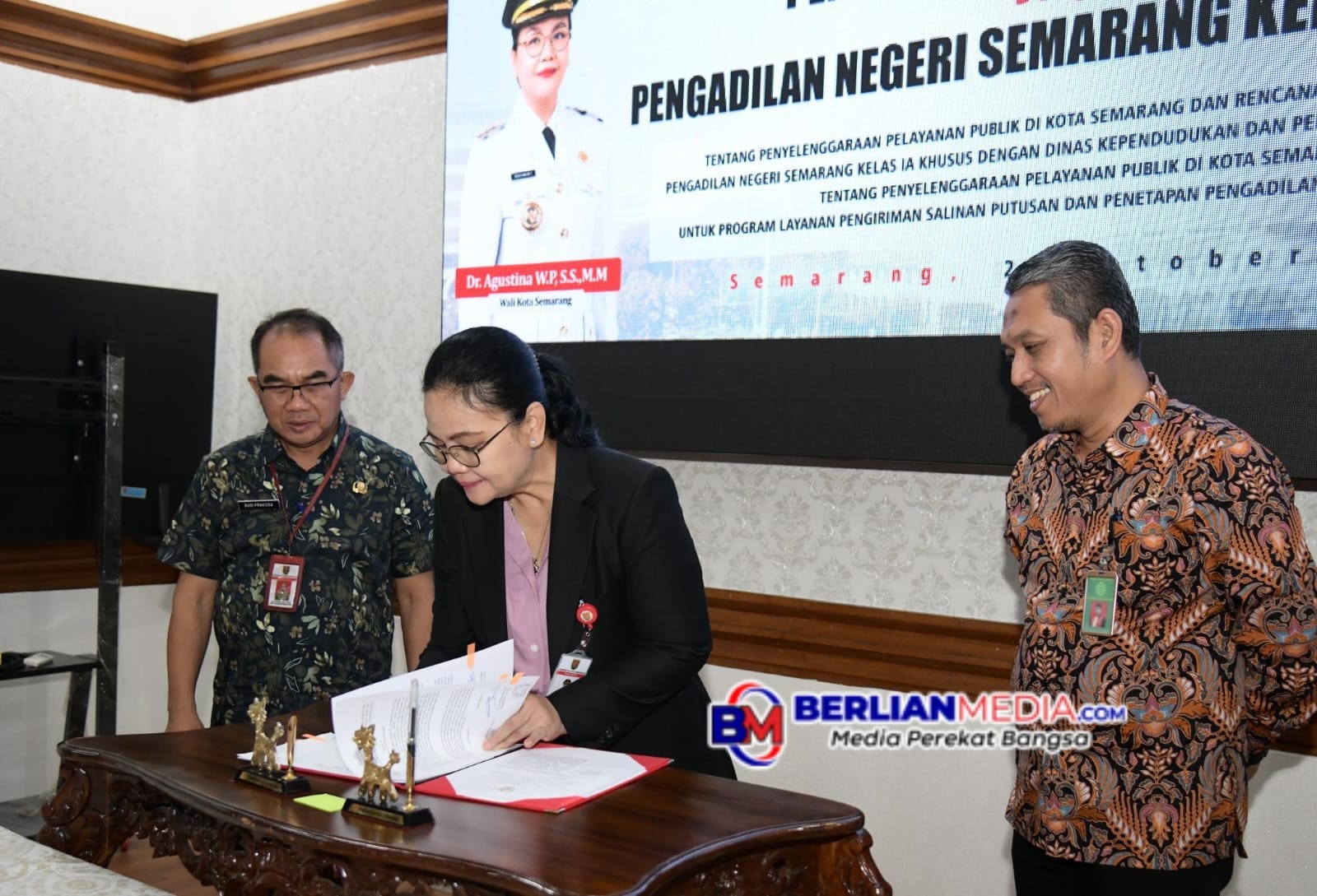 SEMARANG [Berlianmedia]- Wali Kota Semarang, Agustina Wilujeng menandatangani Nota Kesepakatan dengan Pengadilan Negeri Semarang Kelas IA pada hari Kamis (2/10), di Ruang Rapat Wali kota, Balaikota Semarang.