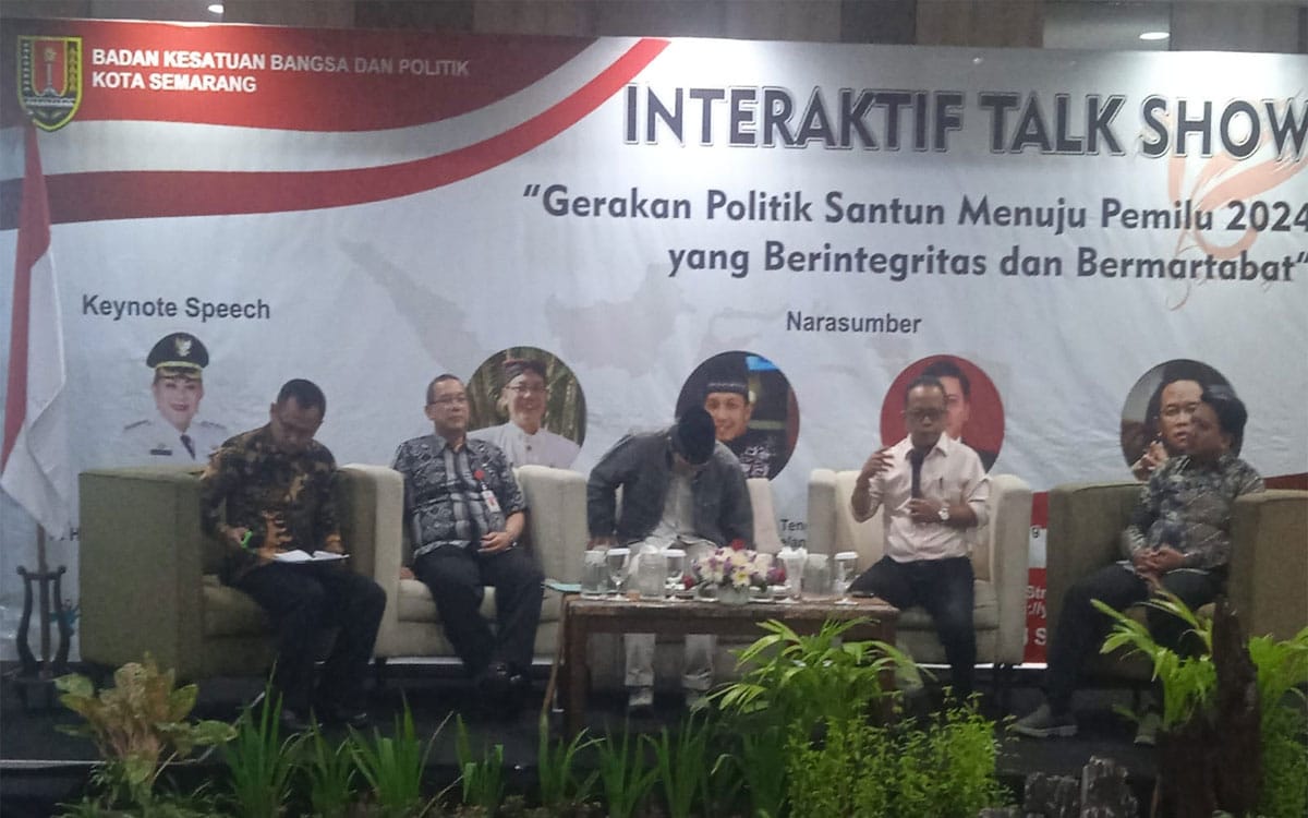 SEMARANG[Berlianmedia] – Badan Kesatuan Bangsa dan Politik (Kesbangpol) Kota Semarang menggelar interaktif talk show dengan tema “Gerakan Politik Santun Menuju Politik 2024 Yang Berintegritas dan Bermartabat” di Hotel Aston Inn, Semarang, Selasa (30/4).