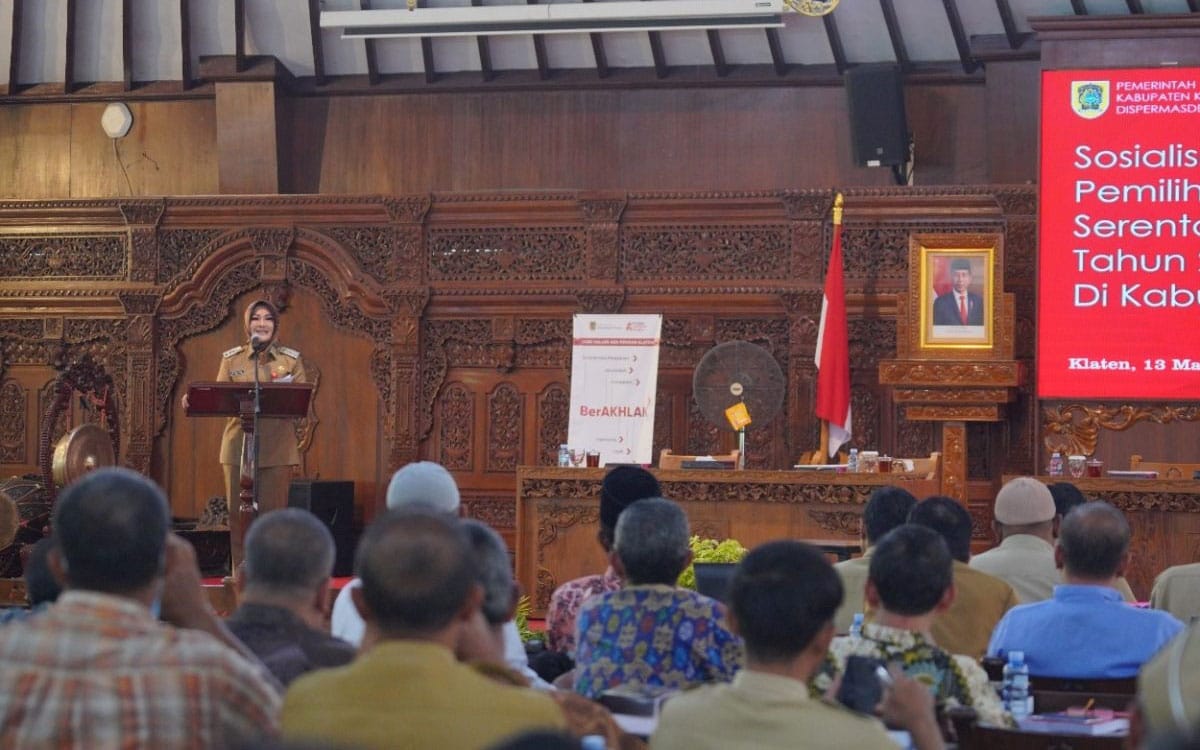 “Pilkades serentak di Kabupaten Klaten dipastikan akan digelar walaupun ada Pemilu 2024. Dan sesuai amanat Menteri Dalam Negeri RI, penyelenggaraan tidak akan mengganggu tahapan pemilihan umum yang akan berlangsung tahun 2024,” ujar Sri Mulyani saat sosialisasi Pemilihan Kepala Desa (Pilkades) Gelombang I/2023, di Pendapa Setda Klaten, Senin (13/3).