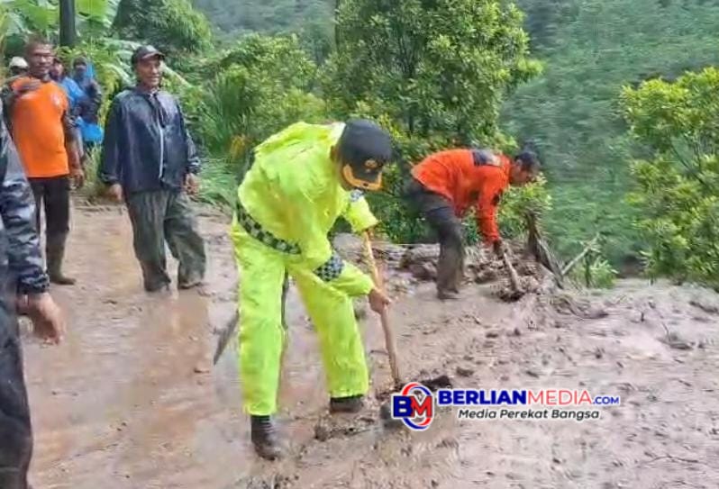 Kondisi tersebut sempat memutus akses penghubung antar wilayah. Dalam proses penanganan, alat berat excavator dikerahkan untuk mempercepat pembersihan.