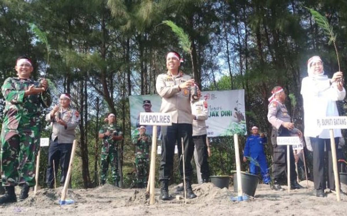 Polres Batang Tanam 1.000 Bibit Pohon di Pantai Sigandu