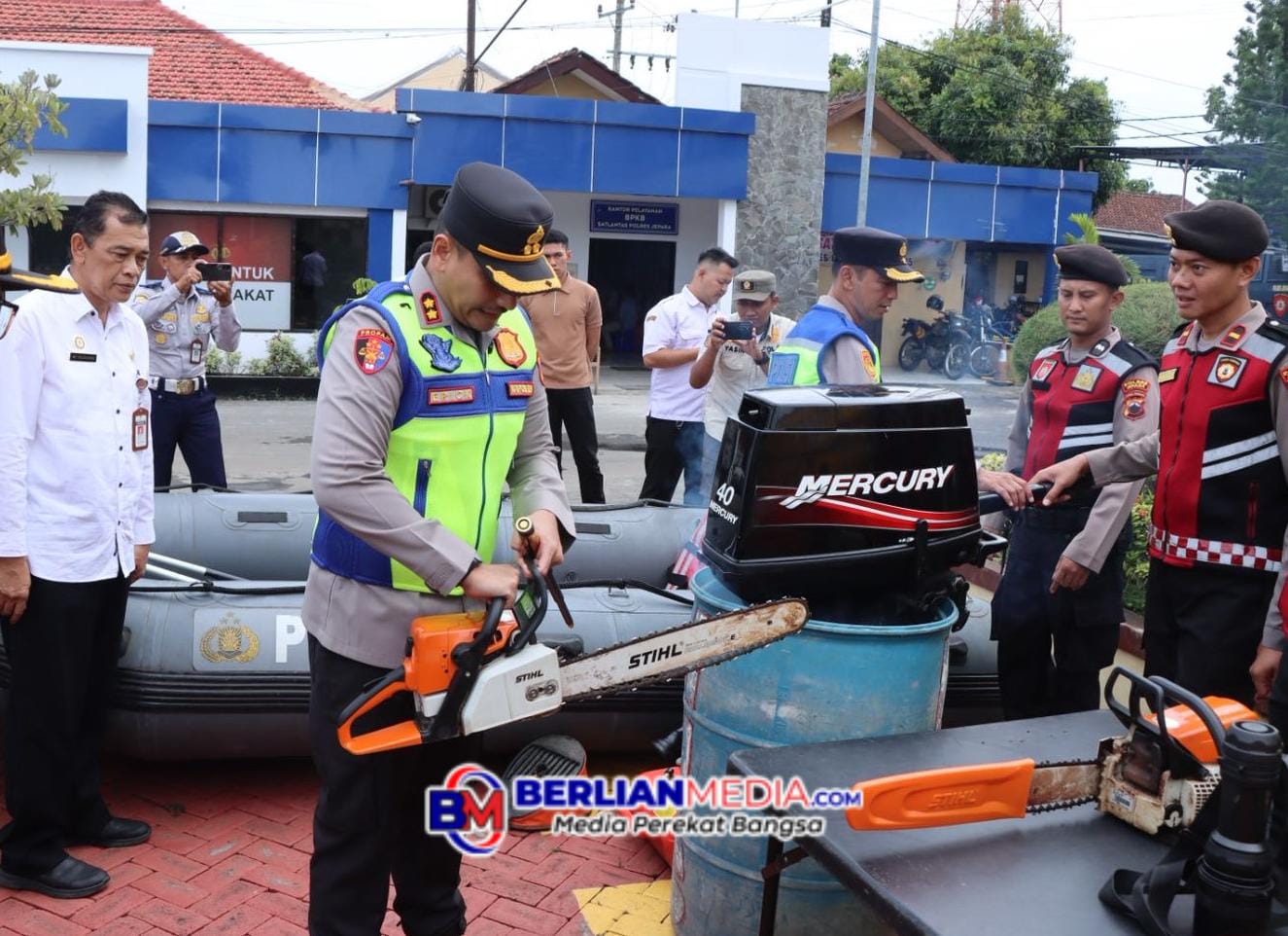 JEPARA [Berlianmedia]- Dalam meningkatkan kesiapsiagaan menghadapi potensi bencana di masa peralihan musim, Kepolisian Resor (Polres) Jepara, Polda Jawa Tengah, menggelar apel bersama pergelaran sarana dan prasarana penanggulangan bencana di halaman Mapolres setempat, pada Rabu (29/10).