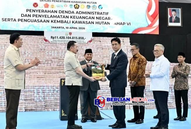 JAKARTA [Berlianmedia]– Presiden Prabowo Subianto memimpin langsung, penyerahan denda administratif serta hasil penyelamatan keuangan negara dan penguasaan kembali kawasan hutan tahap VI, yang digelar di Kompleks Kejaksaan Agung RI, Jumat (10/4).