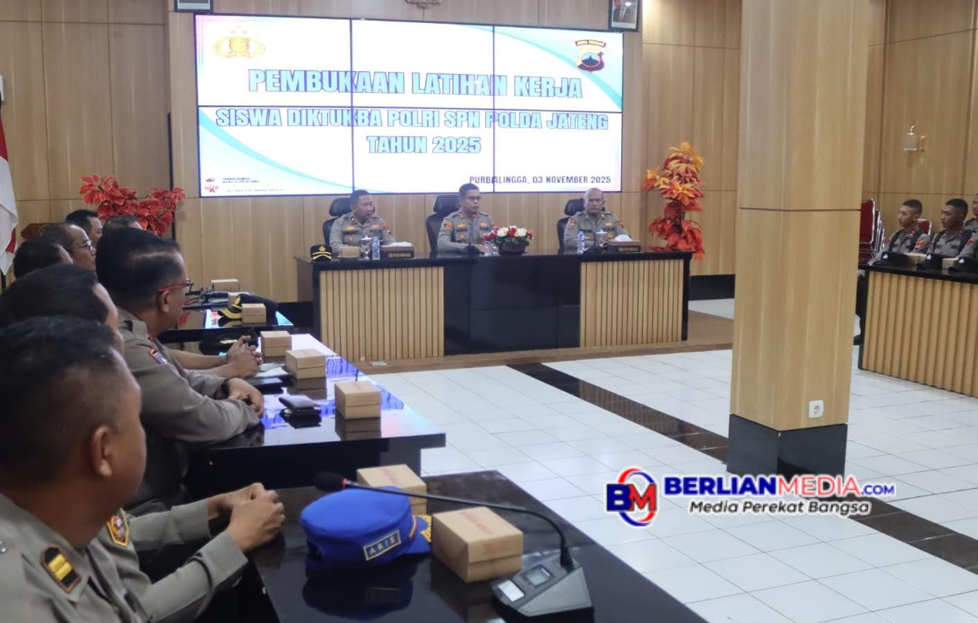 PURBALINGGA [Berlianmedia]– Sebanyak 25 siswa dari Sekolah Polisi Negara (SPN) Polda Jawa Tengah, mulai menjalani latihan kerja di Polres Purbalingga. Kegiatan diawali dengan penyambutan resmi yang digelar di Aula Wicaksana Laghawa Mapolres Purbalingga, Senin (3/11) pagi.