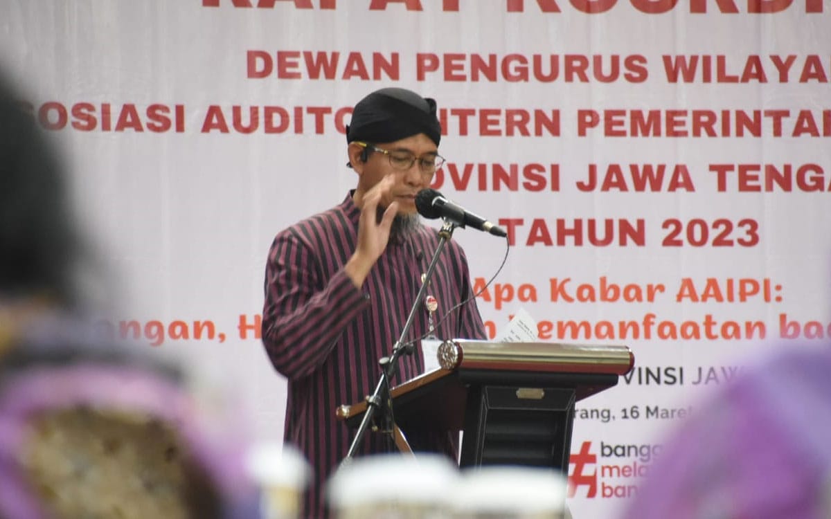 “Pertama capacity building, kemampuan kita harus lebih dari yang kita assesment. Dalam pencegahan korupsi, anda juga harus memberi contoh,” ujar Sumarno saat menghadiri Rakor DPW Asosiasi Auditor Intern Pemerintah Indonesia (AAIPI) Jateng, Kamis (16/3).