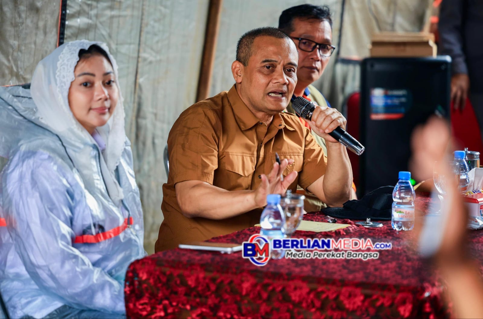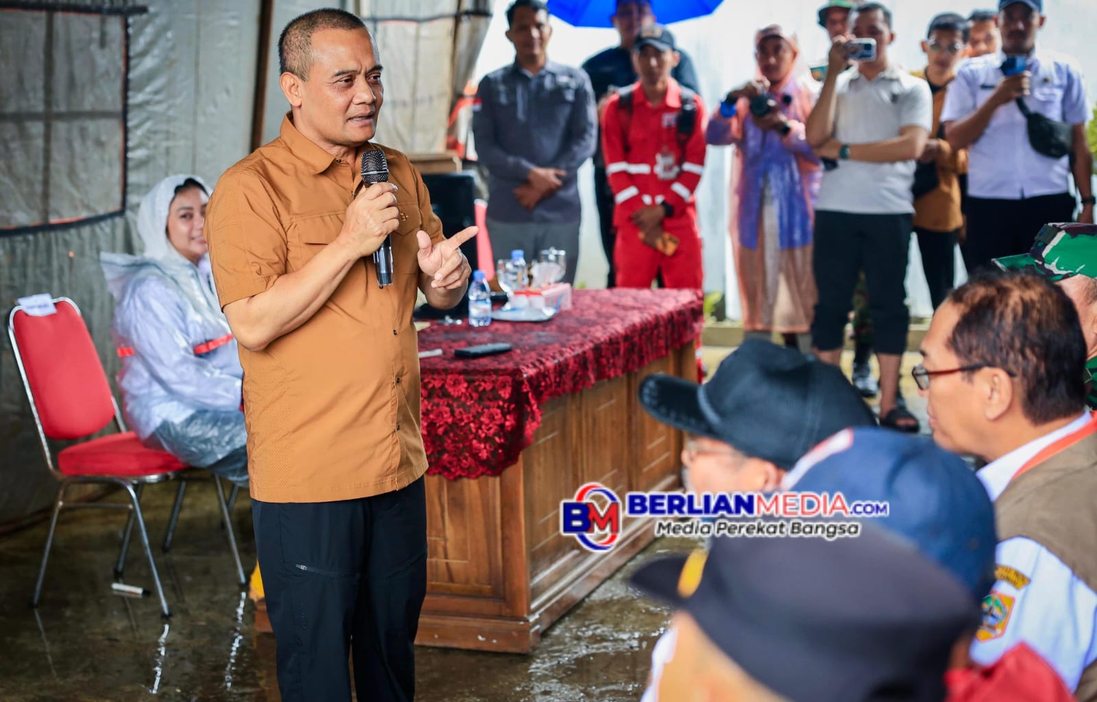 Gubernur Jawa Tengah, Ahmad Luthfi meninjau langsung lokasi pengungsian, sekaligus memimpin rapat penanganan dan penyerahan bantuan di Pondok Pesantren Bahrul Qur’an Al Munawir, Desa Sridadi, Kecamatan Sirampog, Kabupaten Brebes, Rabu (18/2).