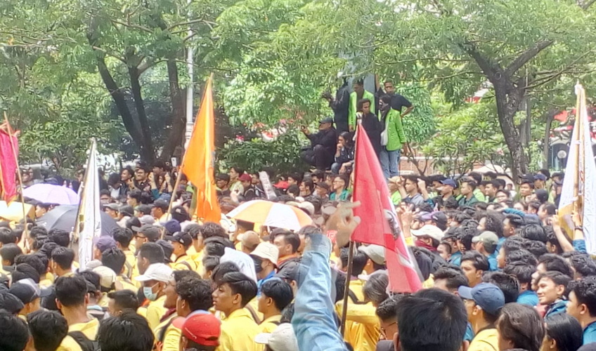 Pantauan di lapangan massa aksi mahasiswa berjas almamater tersebut mulai memadati Jalan Pahlawan di depan gedung DPRD Provinsi Jawa Tengah kisaran pukul 11.20 WIB.