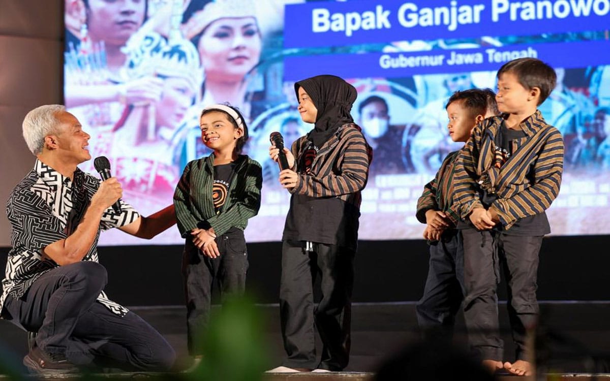 Belum lagi dalam rangkaian acara itu anak-anak yang tergabung dalam Sindu Laras Bocah unjuk kebolehan bermain karawitan. Ganjar melihat masa depan kebudayaan yang digabung dengan teknologi
