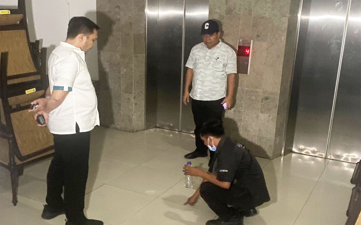 Dari keterangan saksi, posisi tubuh korban diduga terjepit saat berusaha keluar dari sangkar lift.