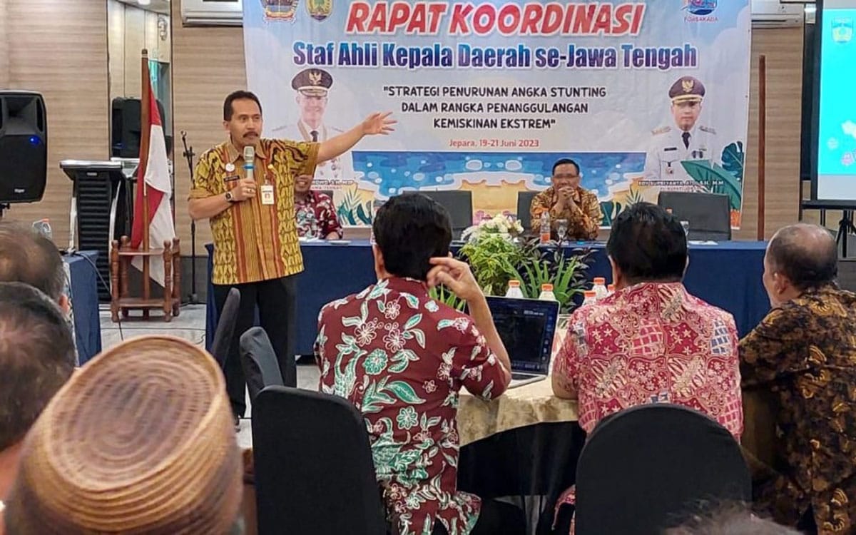 “Harus ada upaya masif dari kita selaku pimpinan saat ini. Stunting ini bukan masalah pendeknya (tubuh), tapi perkembangan otak atau inteligensi anak yang harus diutamakan,” ujar Edy, dalam rapat koordinasi staf ahli kepala daerah se-Jawa Tengah (Forsakada), di D’Season Hotel, Selasa (20/6).
