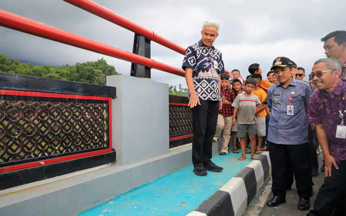 Didampingi Kepala Dinas PU, Bina Marga dan Cipta Karya AR Hanung Triyono di lokasi, Ganjar mengecek dengan teliti tiap jengkal dari bangunan jembatan yang dibangun lewat bantuan keuangan senilai kurang lebih Rp9,7 miliar itu.