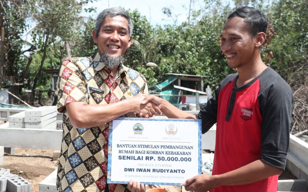 Dalam kesempatan itu, selain menyerahkan bantuan berupa material Ruspin senilai Rp50 juta secara simbolis kepada Dwi Iwan Rudiyanto, warga Kelurahan Genuksari yang rumahnya ludes terbakar pada 28 Desember 2022 lalu, Sekda juga memasang baut dan panel Ruspin bersama Kepala Dinas Perumahan Rakyat dan Kawasan Permukiman (Disperakim) Jateng, Arief Djatmiko, bersama warga.
